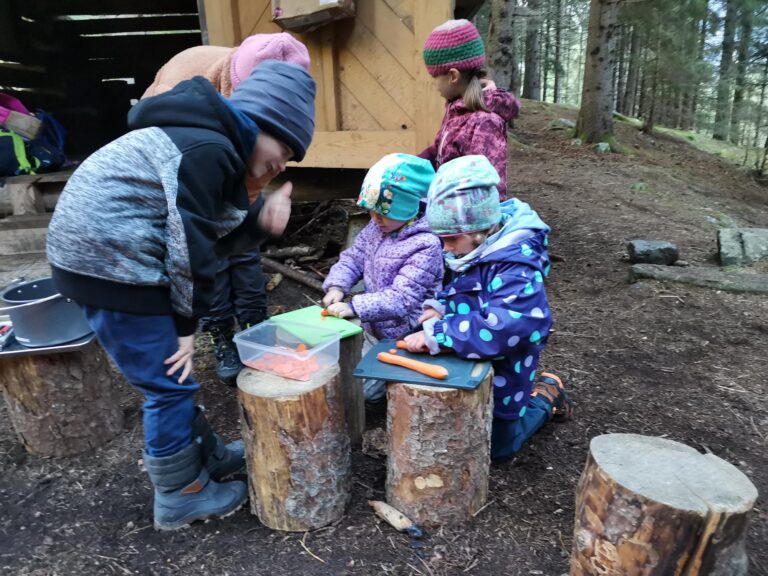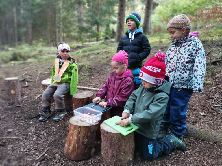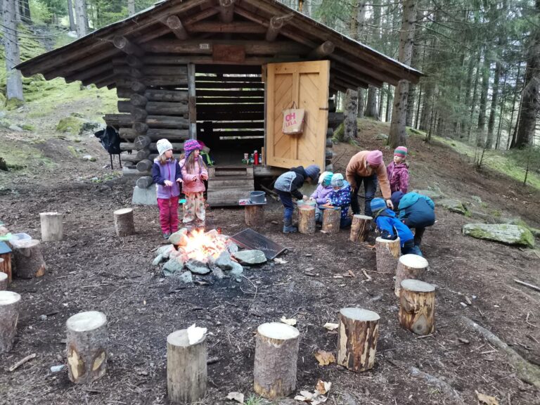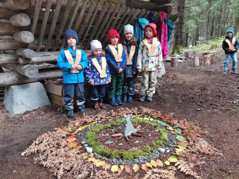 Waldwoche vom Kindergarten Andeer bei kühlem aber trockenem Wetter