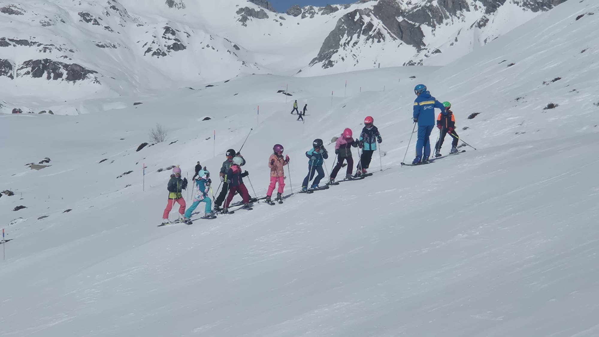 Die Skiwoche der Primarschüler:innen und Kindergartenkinder aus dem Schams fand unter frühlingshaften Bedingungen in Splügen statt.