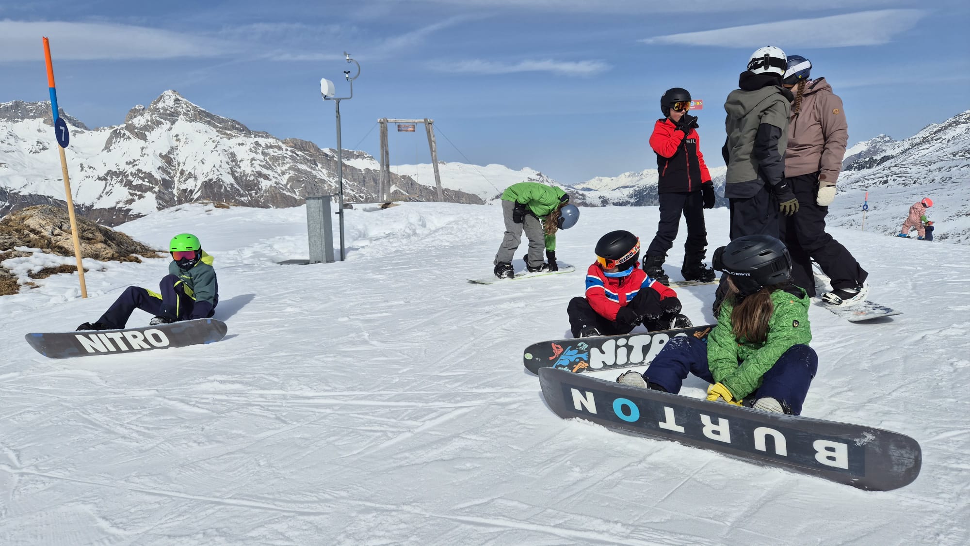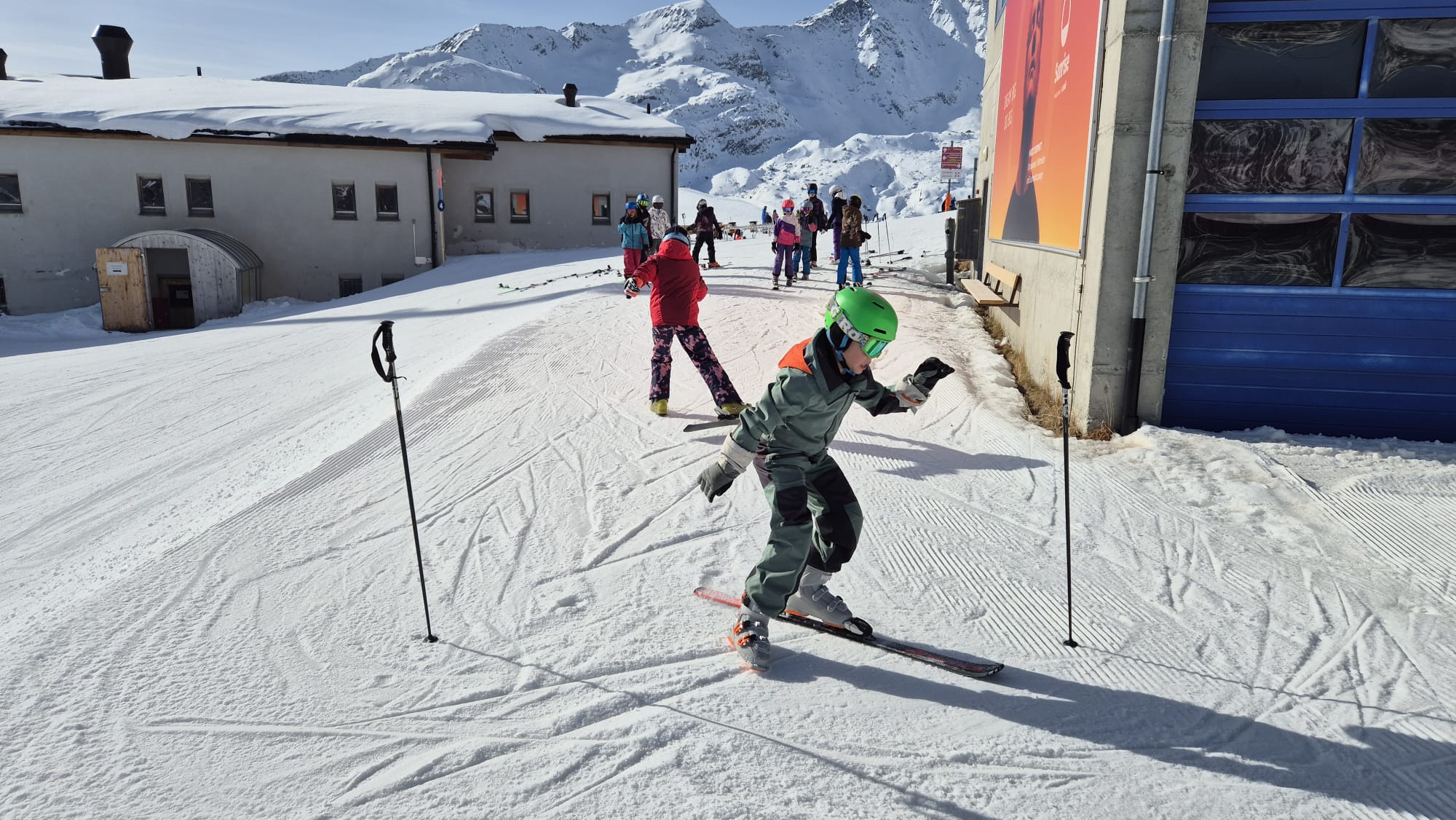 In Gruppen fuhren die Kinder den ganzen Tag. Morgens auf griffigen Pisten und nachmittags im Sulzschnee. Mittags trafen sich alle im Talrestaurant zum Zmittag und um Pause zu machen.
